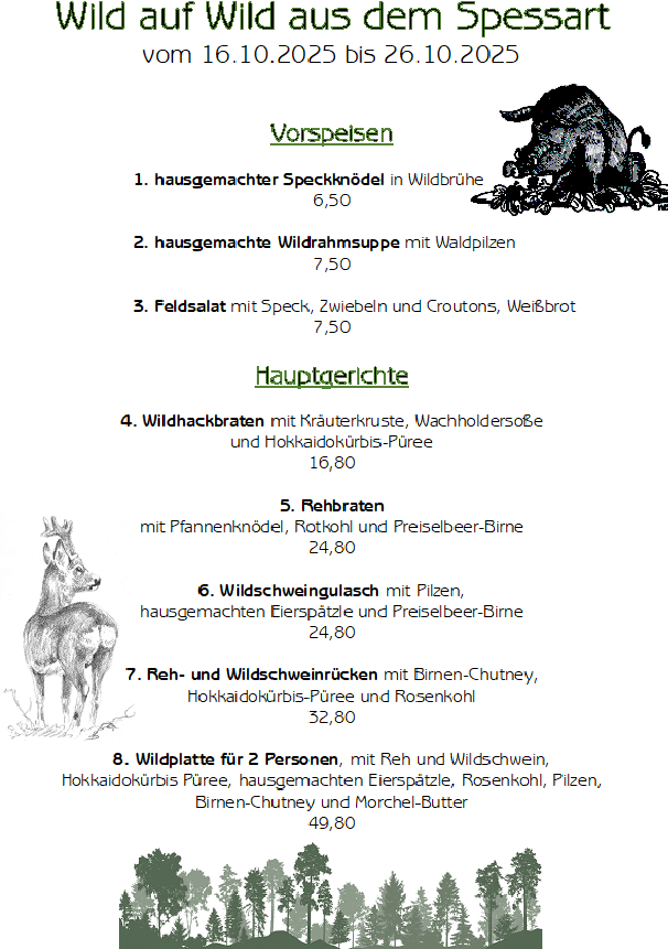 Wir freuen uns auf Sie. Kehren Sie ein in einem der ältesten Gasthäuser im Kahlgrund. In unserem Familienbetrieb erwartet Sie eine reichhaltige Speisenkarte mit saisonalen und regionalen Gerichten für jeden Geschmack.